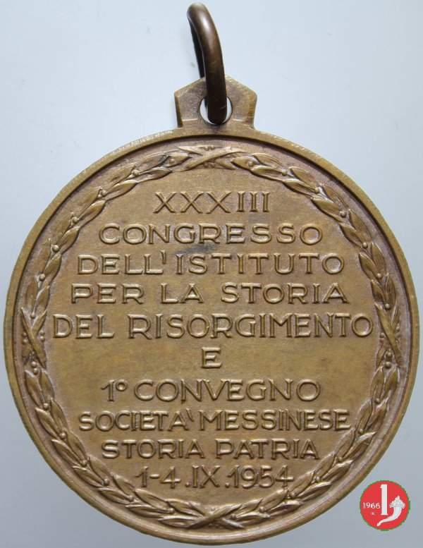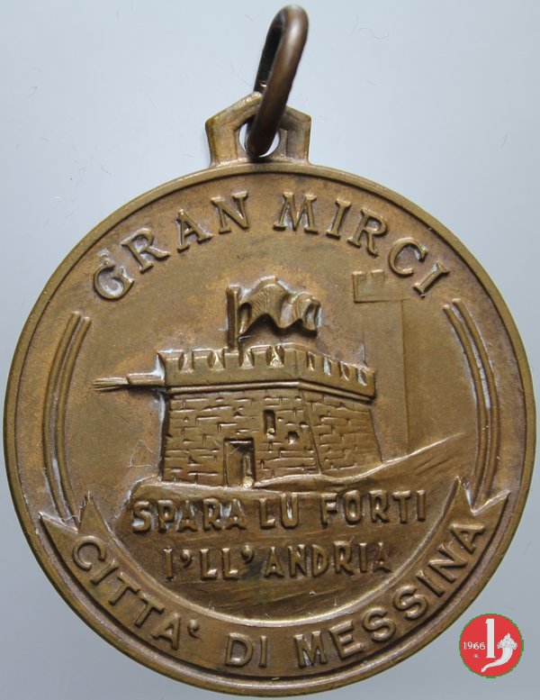Congresso del Risorgimento 1954 Dritto: GRAN MIRCA Vista di Fortino a torre con bandiera in esergo: SPARA LU FORTI = I'LL'ANDRIA sotto, entro nastro disposto lungo il bordo: CITTA' DI MESSINA | |