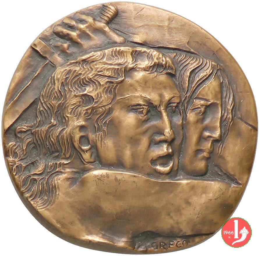 Obverse: Al centro: raffigurazione della scultura dell'Autore Ragusano "Restituiteci la dignità del lavoro". A destra la firma dell'Autore "CAPPELLO" Intorno: la scritta "RESTITUITECI ALLA DIGNITA' DEL LAVORO"