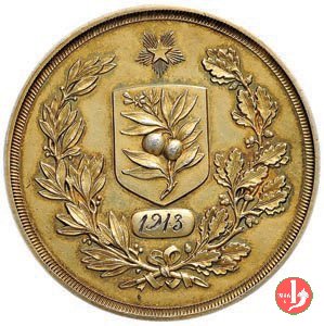 Obverse: Sul lato sinistro immagine femminile che porge un ramo di alloro in avanti e quercia dietro.