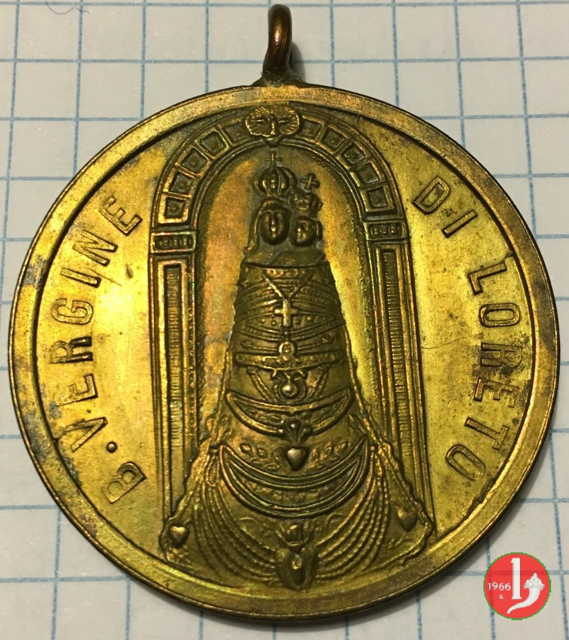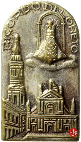 Placchetta Ricordo di Loreto Obverse: RICORDO DI LORETO la B. V. Maria entro arco e su nube, sormonta la facciata della Basilica della Santa Casa | |