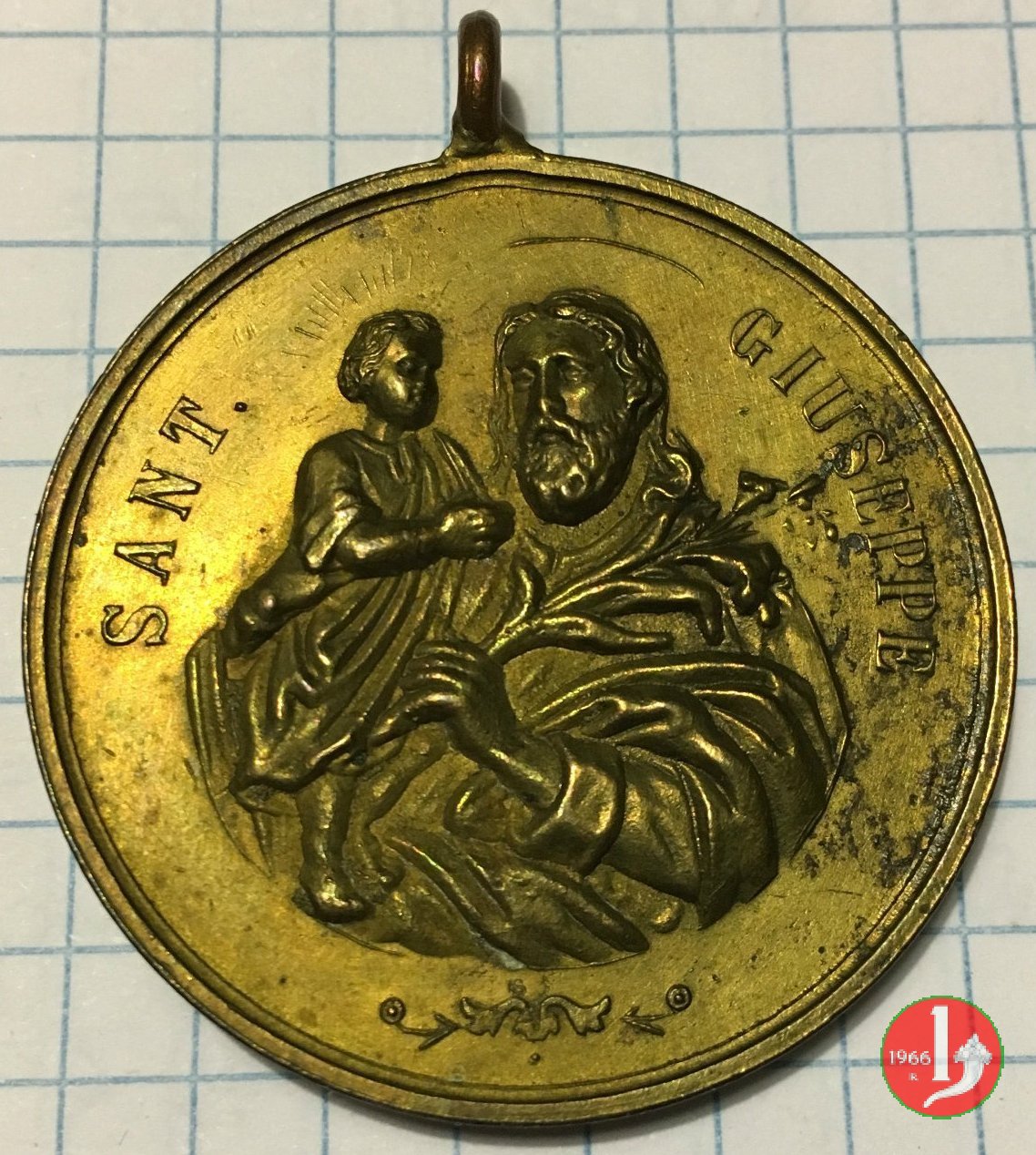 Madonna di Loreto e S. Giuseppe Obverse: B. VERGINE _ DI LORETO La Madonna di Loreto coronata con dalmatica con il Bambino Gesú coronato entro edicola ad arco sormontata da Colomba dello Spirito Santo raggiante busto di San Giuseppe palodato, regge stelo di gigli e il Bambino Gesú con volto raggiante in basso: fregio | |