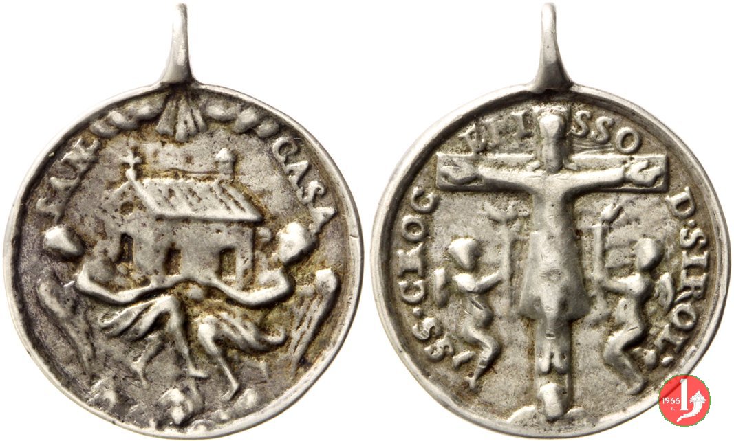 Santa Casa e Crocefisso di Sirolo Obverse: SAN _ CASA La Santa Casa trasportata da due Angeli tra nubi e irraggiata dall'alto Crocefisso tra angeli con candele e sorretto da Cherubino | |