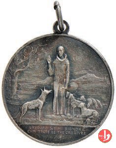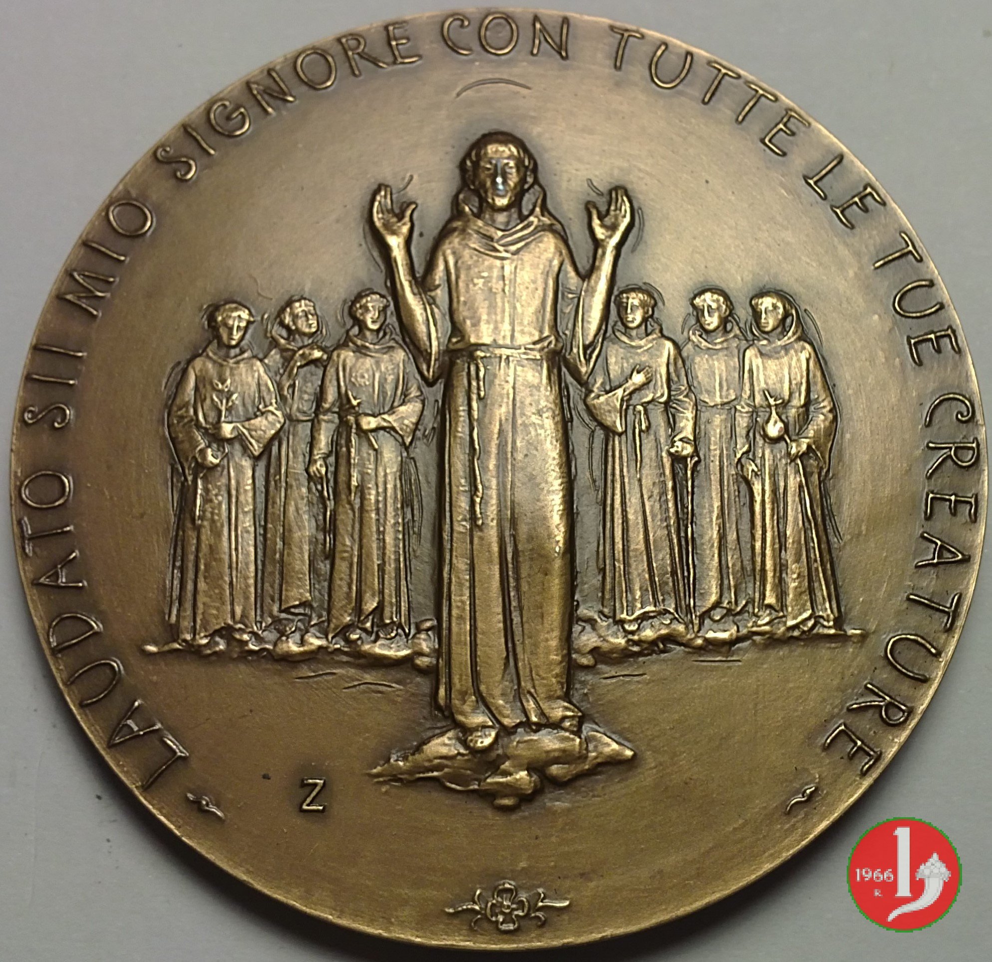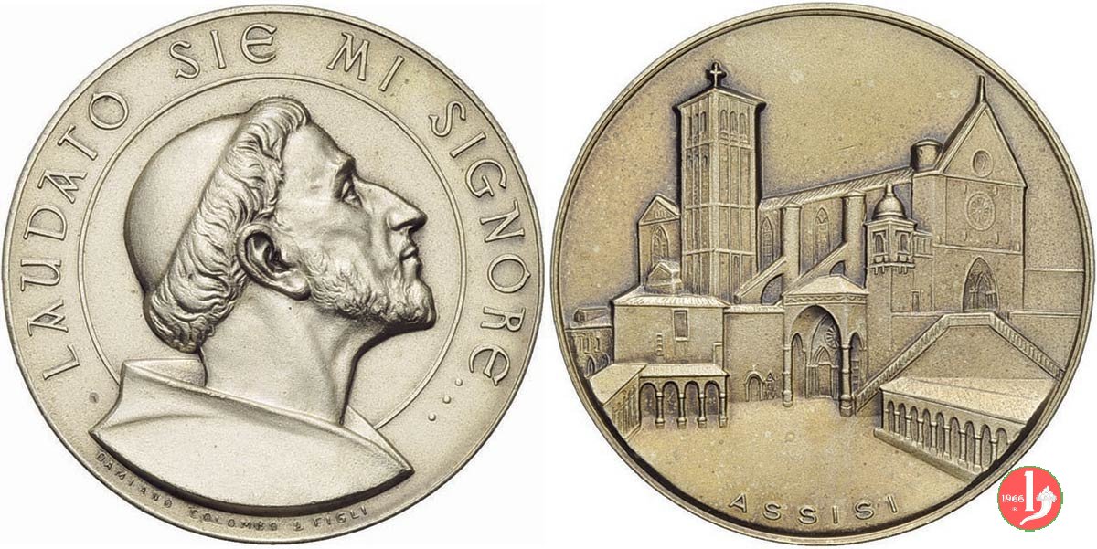 Laudato Sie Mi Signore Obverse: LAUDATO SIE MI SIGNOR... entro cerchio interrotto in basso: busto a dx con saio sotto: DAMIANO COLOMBO & FIGLI in basso: ASSISI | |
