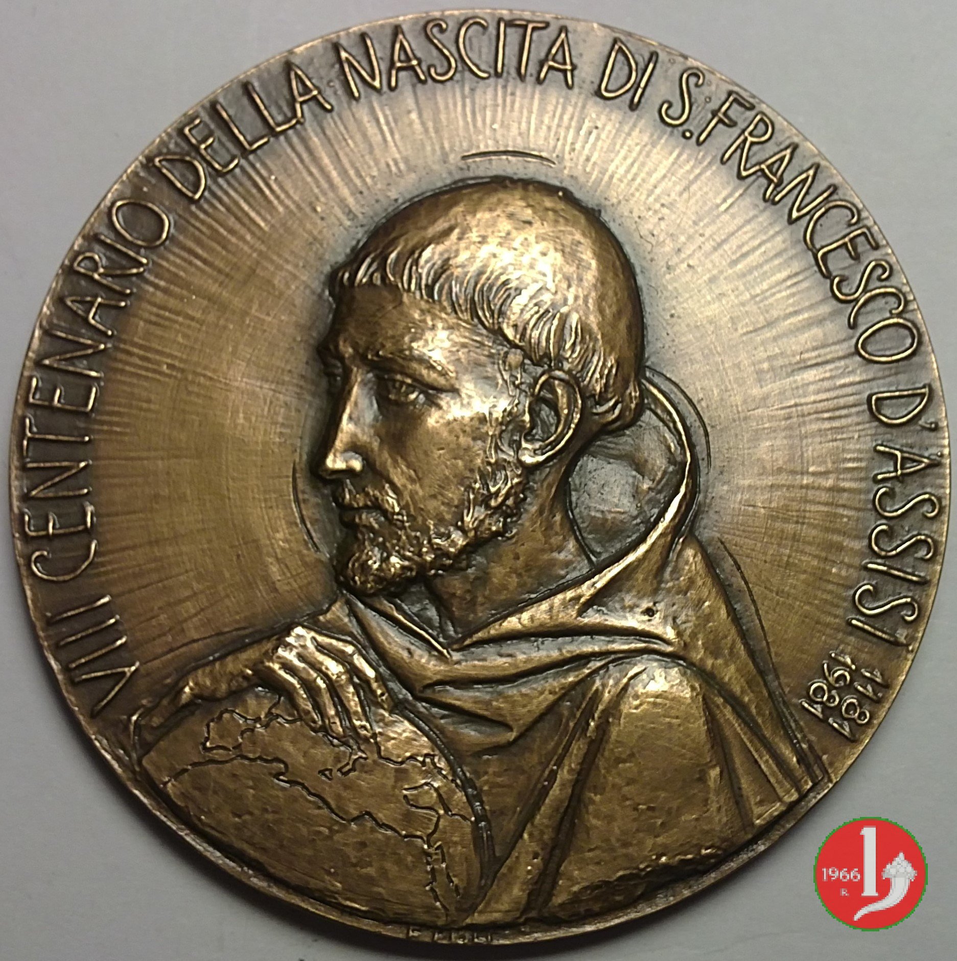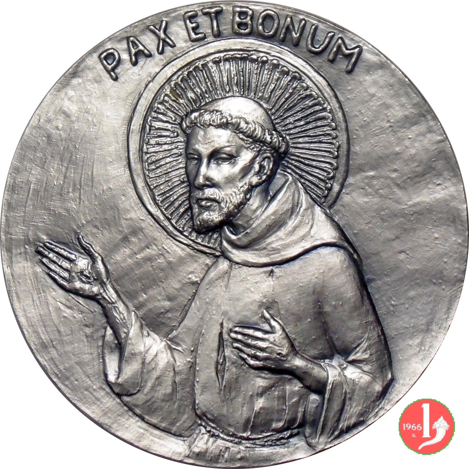 750° - Anno Francescano Obverse: S. FRANCESCO D'ASSISI busto con saio e cappuccio a dx nel campo, verticalmente, in corsivo, a dx: P. GHIGLIA nel campo: 750° sotto, circolarmente: ANNO FRANCESCANO | |
