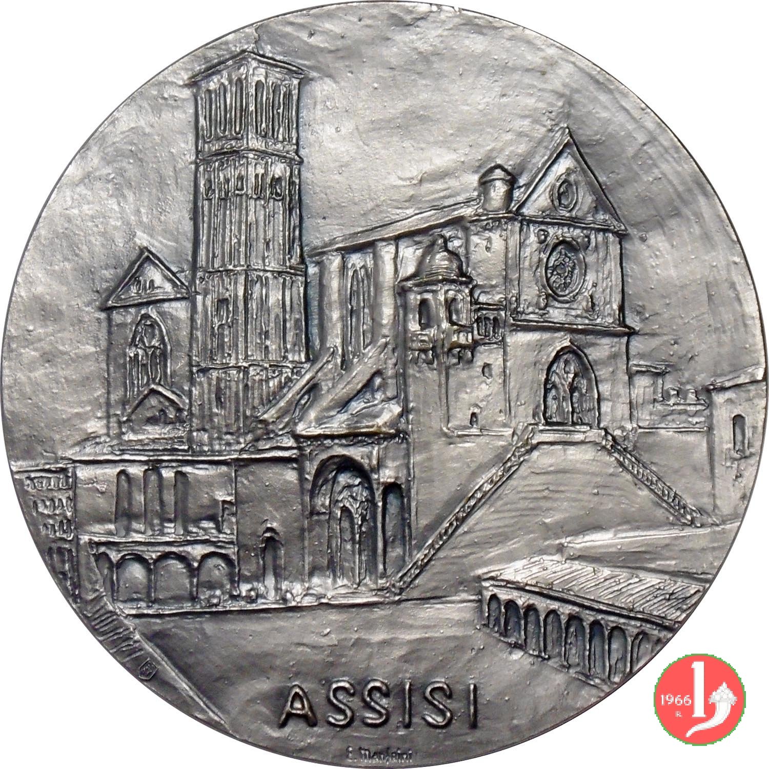 800° nascita di S. Francesco 1982 Obverse: OTTOBRE 1982 • OTTAVO CENTENARIO DELLA NASCITA DI SAN FRANCESCO busto del Santo a dx con saio e nimbo raggiante vista della Basilica di San Francesco dalla Piazza inferiore in esergo: CDM | |