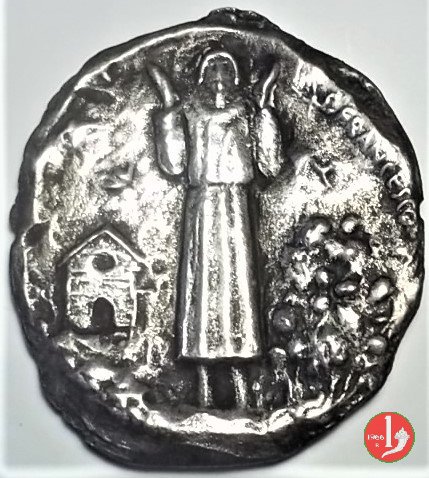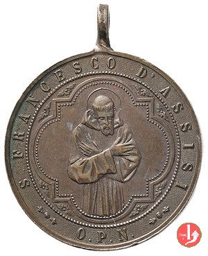 Preghiera Obverse: S. FRANCISCE _ DE ASSISI O.P.N. busto nimbato a sx con saio e braccia incrociate in basso, a sx: S.J. | |