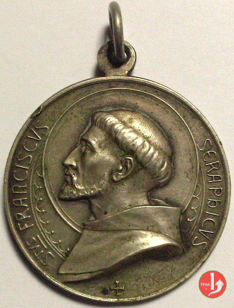 Seraphicus 1926 -TAM4104 Obverse: Stvs FRANCISCVS _ SERAPHICVS busto nimbato a sx con saio sul taglio spalla: KISSING sotto: ✠ San Francesco, nimbato e disteso a braccia aperte, tra frati oranti, mira in cielo stella raggiante tra due Cherubini ai lati: DEPOSE' _ KISSING in esergo: EDVC DE CVSTODIA ANIMAM = MEAM AD CONFITENDVM = NOMINI TVO. | |