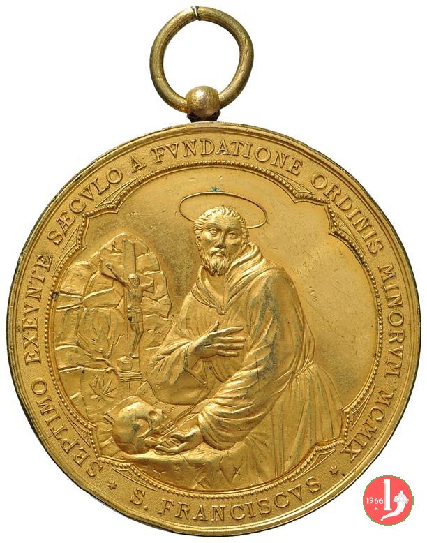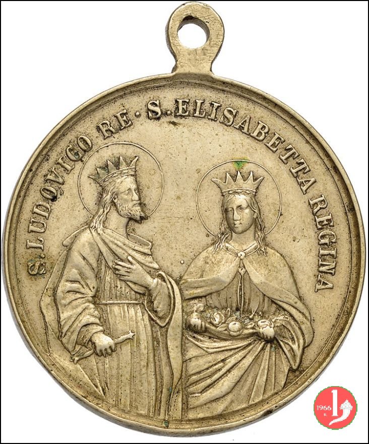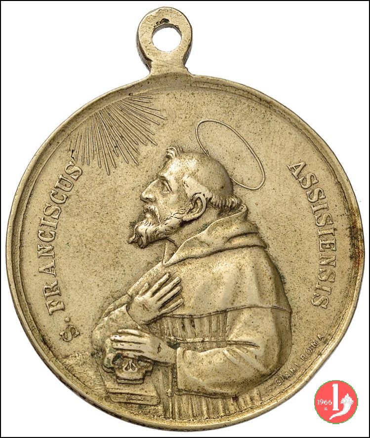 SS. Ludovico ed Elisabetta Obverse: S. FRANCISCUS _ ASSISIENSIS busto nimbato a sx con mani sul petto e su teschio, mira bagliore in basso, a dx: GIANI ROMA mezzi busti affiancati, nimbati e coronati con mantelli | |