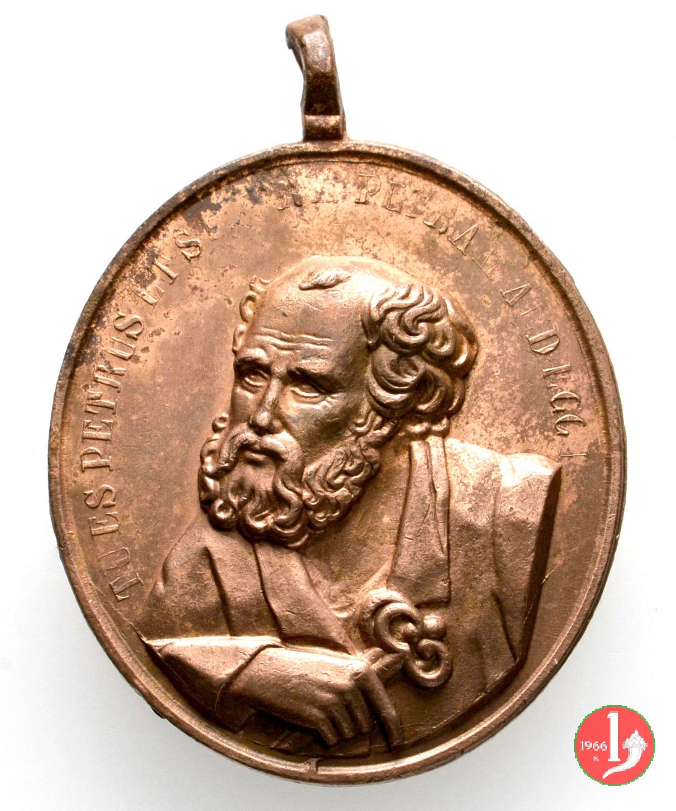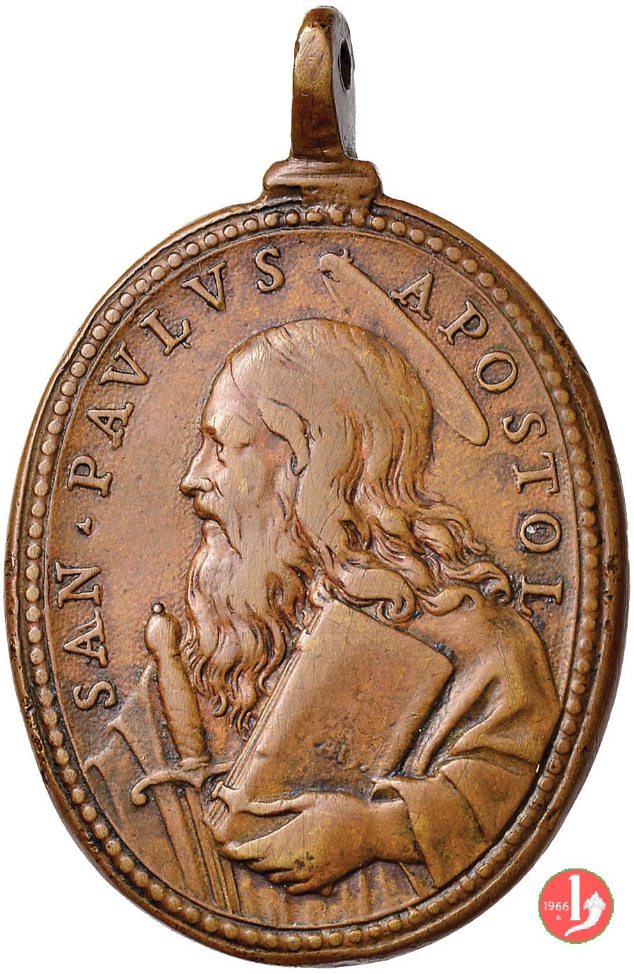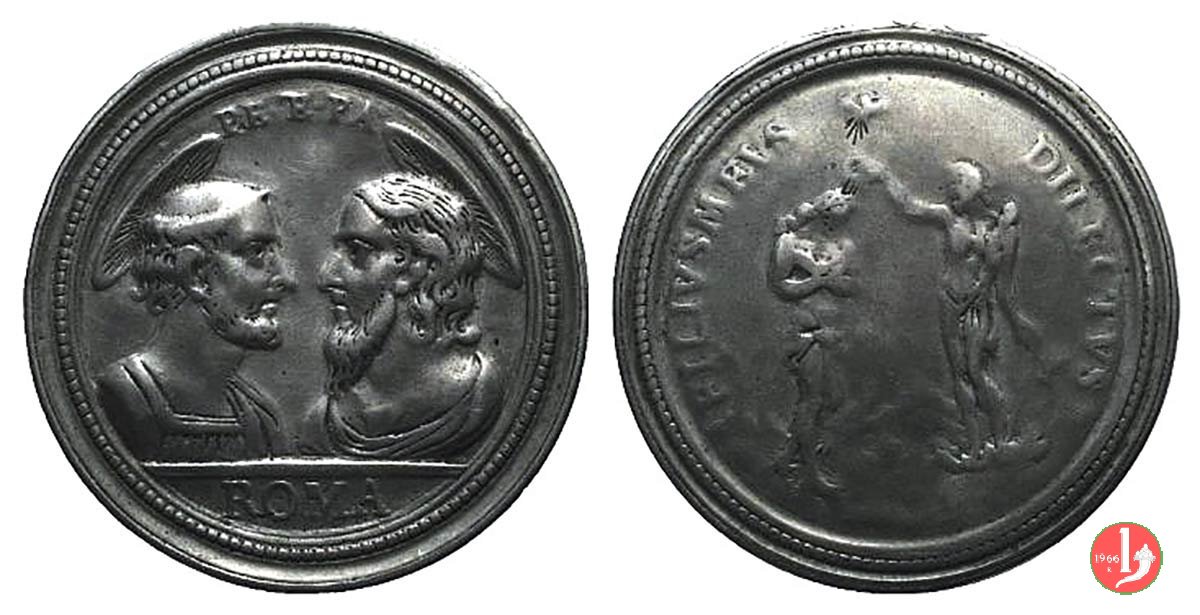 SS. Apostoli Pietro e Paolo 36x29mm Obverse: Sus PAULUS _ APOSTOLUS * busto di 3/4 a dx con tonaca busto di 36/4 a sx regge chiavi | |