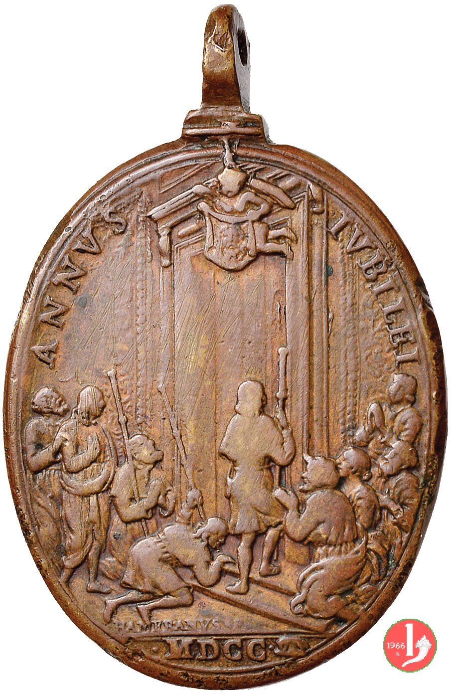 San Paolo - Anno Santo 1700 Obverse: SAN • PAVLVS _ APOSTOL busto nimbato a sx con Vangelo e spada Pellegrini oranti sulla soglia della Porta Santa a dx; in alto Angelo regge sudario con il volto di Cristo sulla linea dell'esergo: HAMERANVS • F • in esergo: • MDCC • (e lupa) | |