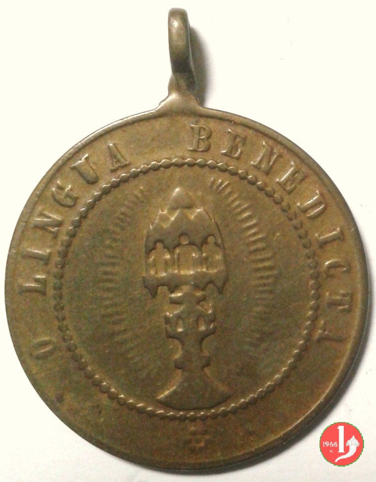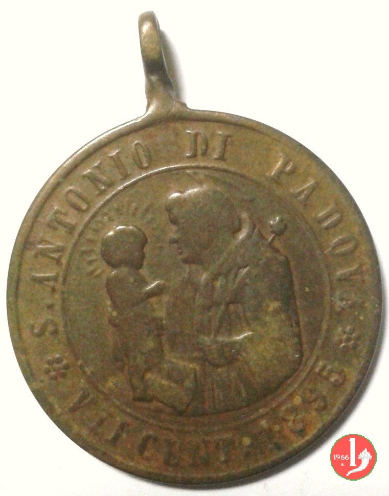 VII Centenario della nascita 1895 Obverse: S. ANTONIO DI PADOVA = * VII CENT. 1895 * entro cerchio continuo: busto nimbato volto a sx a Bambino raggiante entro cerchio perlinato: la reliquia della Lingua Benedetta del Santo raggiante | |