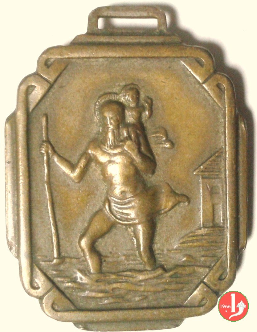 San Cristoforo Obverse: mezzo busto volto di 3/4 a sx nimbato con saio regge Bambino Reverse: San Cristoforo nimbato e volto di 3/4 a sx, regge Bambino sulla spalla e pastorale | |