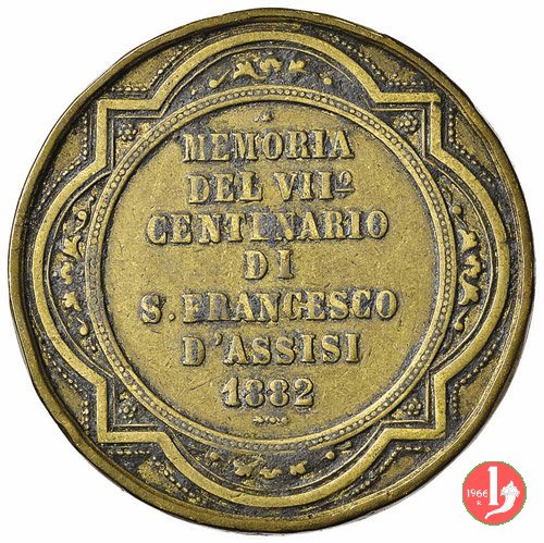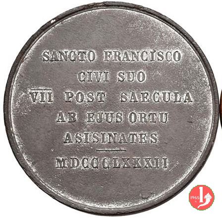 700° della nascita 1882 - 40mm -TAM4100 Obverse: S. FRANCESCO _ D'ASSISI mezzo busto nimbato con saio, orante Croce a dx | |