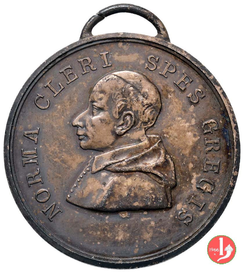 Seminario di Milano 40mm Obverse: NORMA CLERI SPES GREGIS • busto a sx con zucchetto e mozzetta entro rami d'alloro, legati in basso da nastro: TIMH = EK ΔIOΣ = EΣTI sotto, motto: HUMILITAS coronato | |