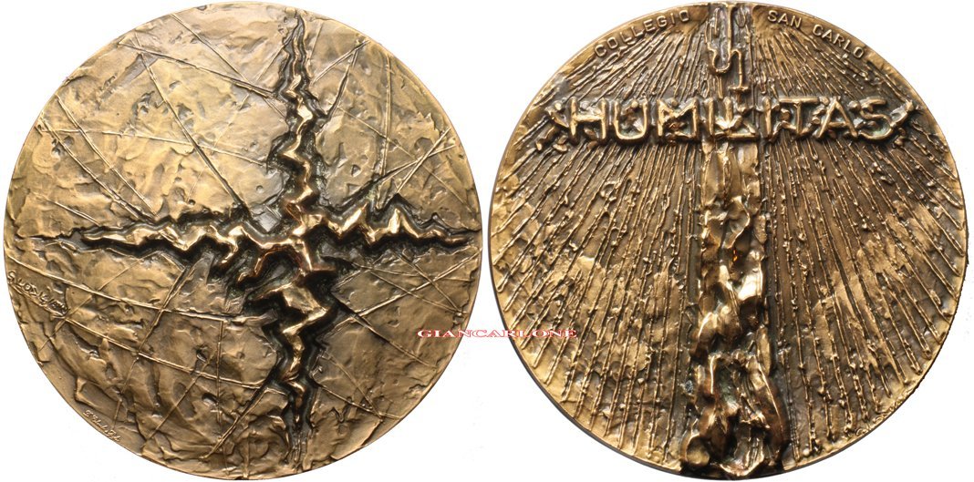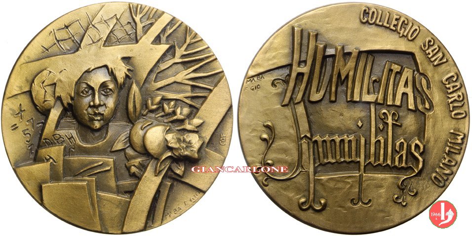 Collegio San Carlo Borromeo di Milano 40mm Obverse: busto di fanciullo su Croce , alberi, tra calcoli matematici e mazzo di fiori in basso a dx: MABA _ F. GIO _ CDF nel campo su rettangolo: HUMILITAS (ripetuto in gotico) in alto a sx: MA BA = F. GIO |