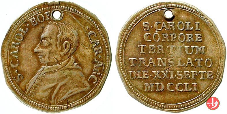 3° Traslazione del Corpo di S. Carlo Borromeo 1751 Obverse: S • CAROL • BOR _ • CAR • ARC busto nimbato a sx con abito talare | |