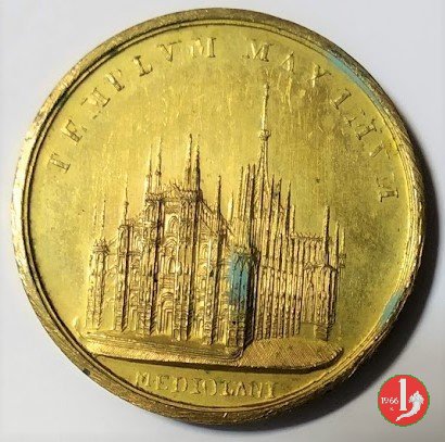 Duomo di Milano 27x24mm 1859 Obverse: S. CARLO _ BORROMEO busto a sx con berretto e mozzetta Prospetto anteriore del Duomo di Milano in esergo: 1859 | |