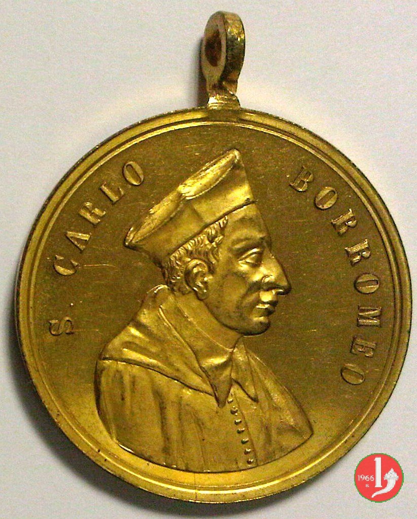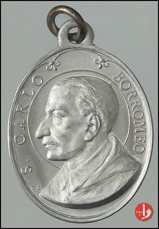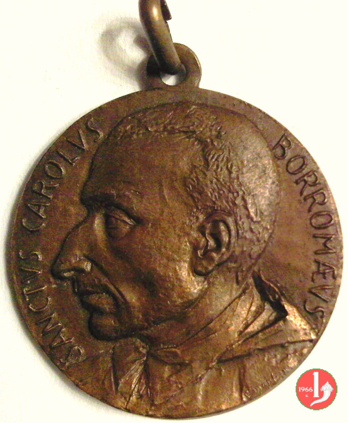 Insegne Obverse: SANCTVS CAROLVS _ BORROMAEVS busto a dx con mozzetta sotto: E. MANFRINI sotto motto in nastro: HUMILITAS in basso: S.J. | |
