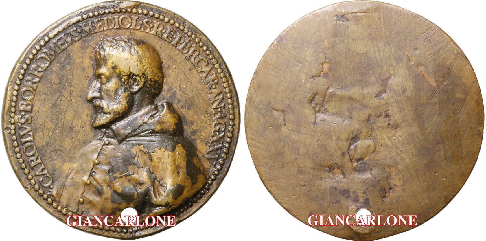 Uniface con Busto a sx 1563 Obverse: CAROLUS • BORROMEUS • MEDIOL • S • R • E • PBR • CAR • AN • AG • XXV busto a sx con mozzetta sul taglio spalla: Gio. Ant. Rossi | |