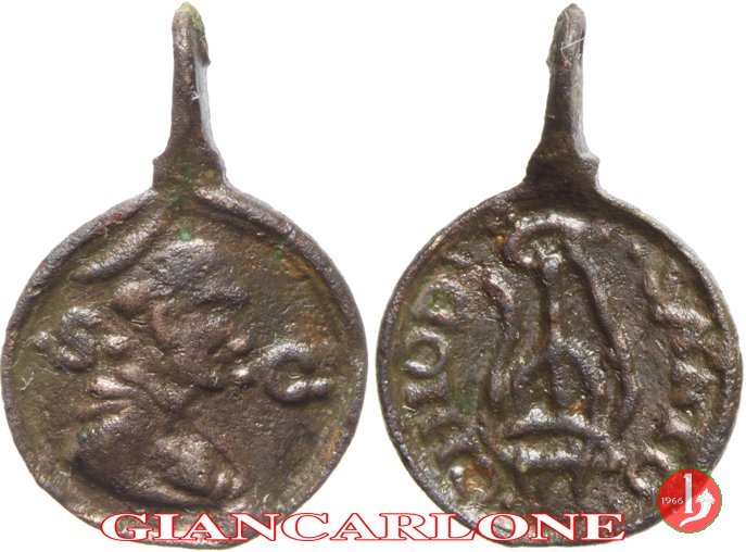 IHS Obverse: • S • CA • B • busto nimbato a sx rivolto a Crocefisso in esergo: tre dardi decussati | |