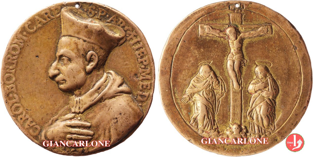 Crocifissione 53mm Obverse: CAROL • BORROM • CARD • S • P • ARCHIEP • MED Busto in a sx con berretto e la mano destra sul petto | |