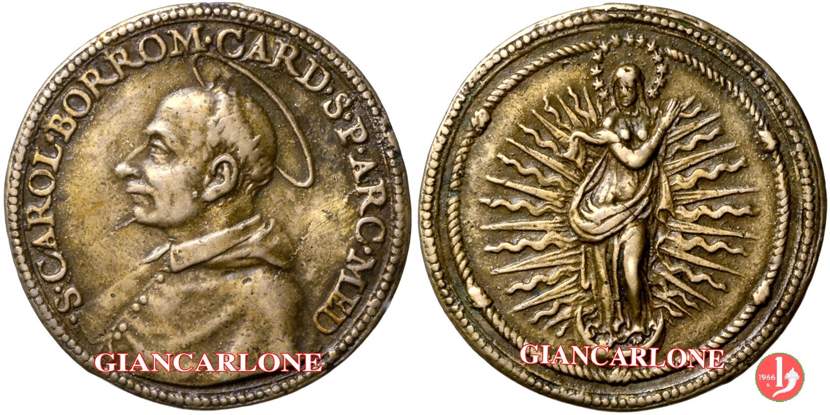 B. V. raggiante Obverse: S. CAROL • BORROM • CARD • S • P • ARC • MED Busto nimbato, a sx, con mozzetta | |