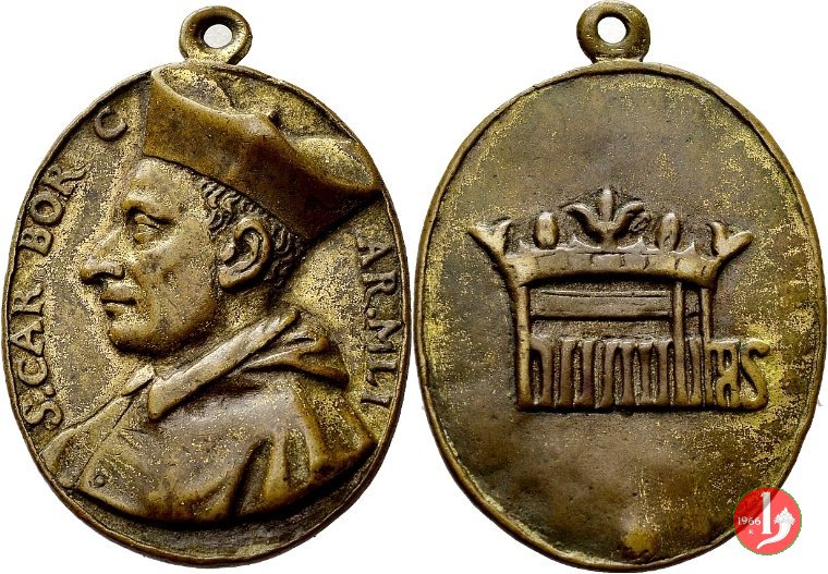 Insegne 49x39mm Obverse: B • CAR • BOR • C _ AR • MLI busto a sx con berretto e mozzetta | |