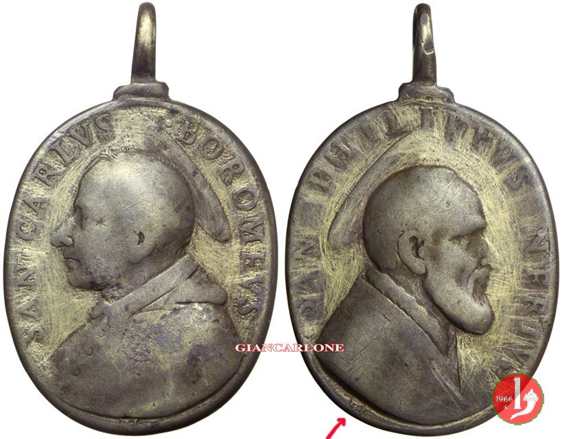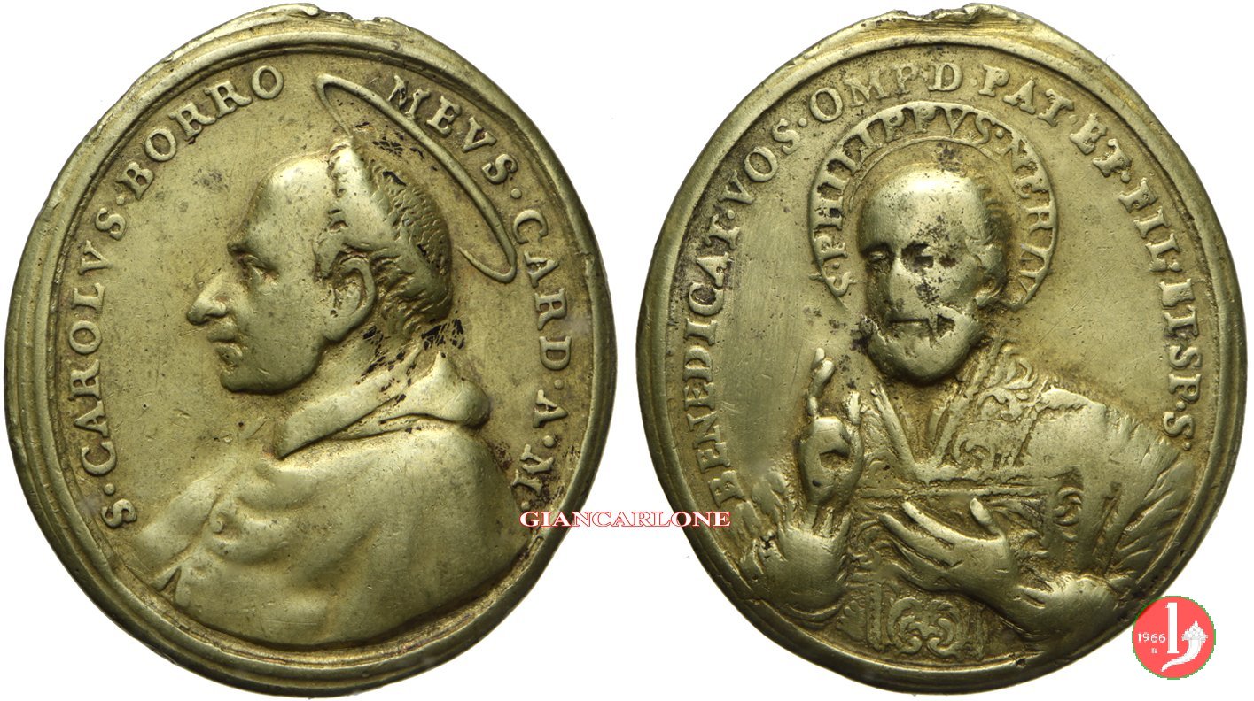 San Filippo Neri Obverse: S • CAROLVS • BORRO _ MEVS • CARD • A • M • busto nimbato a sx con mozzetta busto di San Filippo Neri benedicente con casula, di fronte, sul nimbo S • PHILIPPVS • NERIVS | |