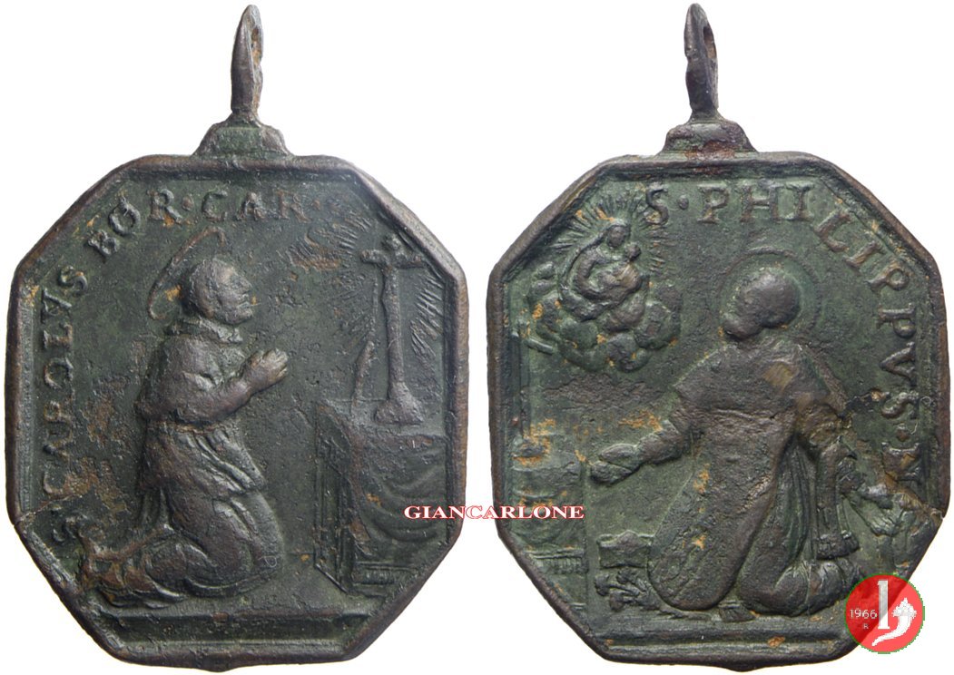 San Filippo Neri Obverse: S • CAROLVS • BOR • CAR IL Santo genuflesso a dx presso altare prega Crocefisso Il Santo genuflesso a sx prega la B. V. Maria su nube | |
