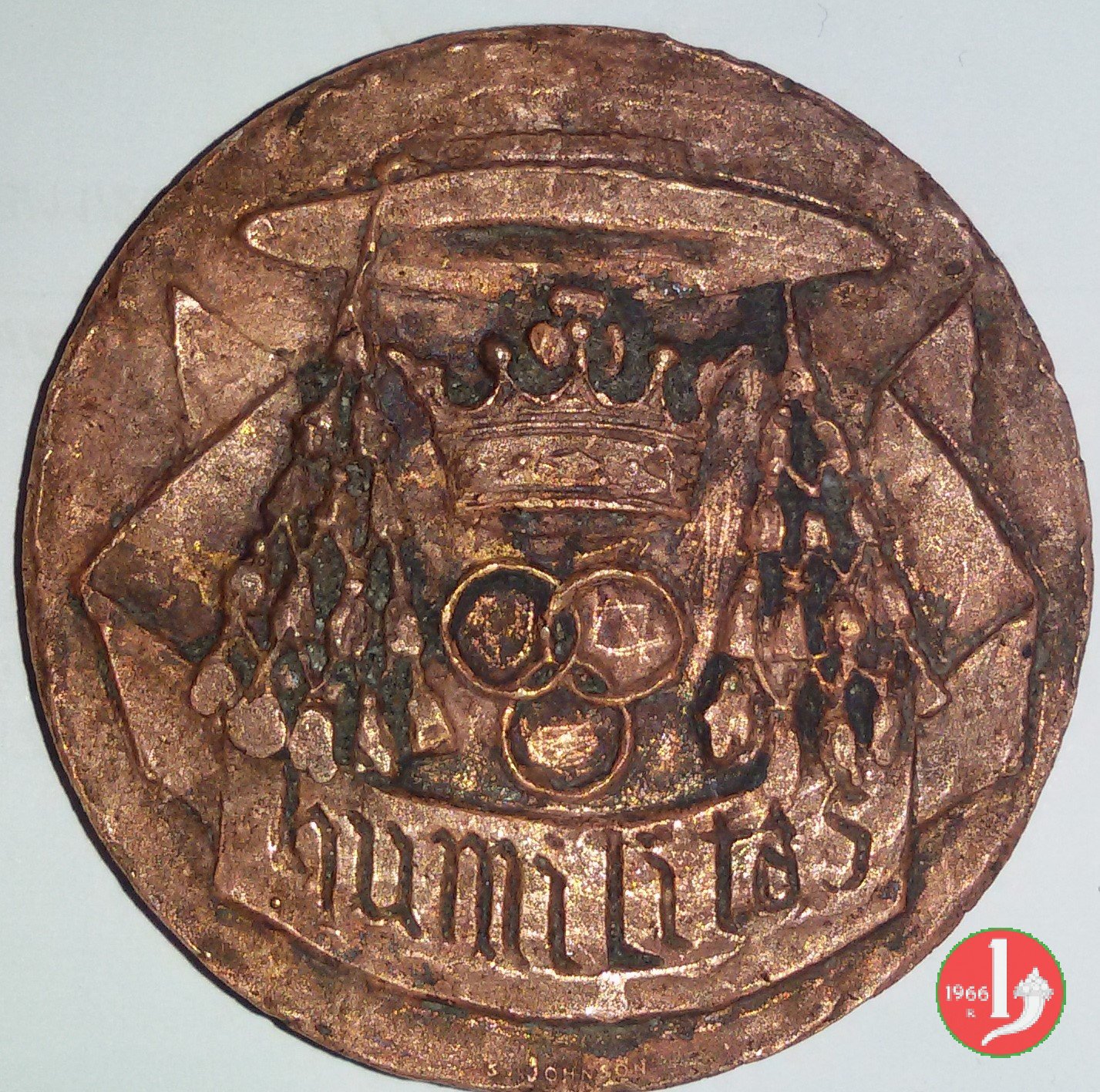 Humilitas con corona 60mm Obverse: SANCTVS CARLVS _ BORROMAEVS Busto a sx con mozzetta in basso a dx: E. MANFRINI in basso: S. JOHNSON | |