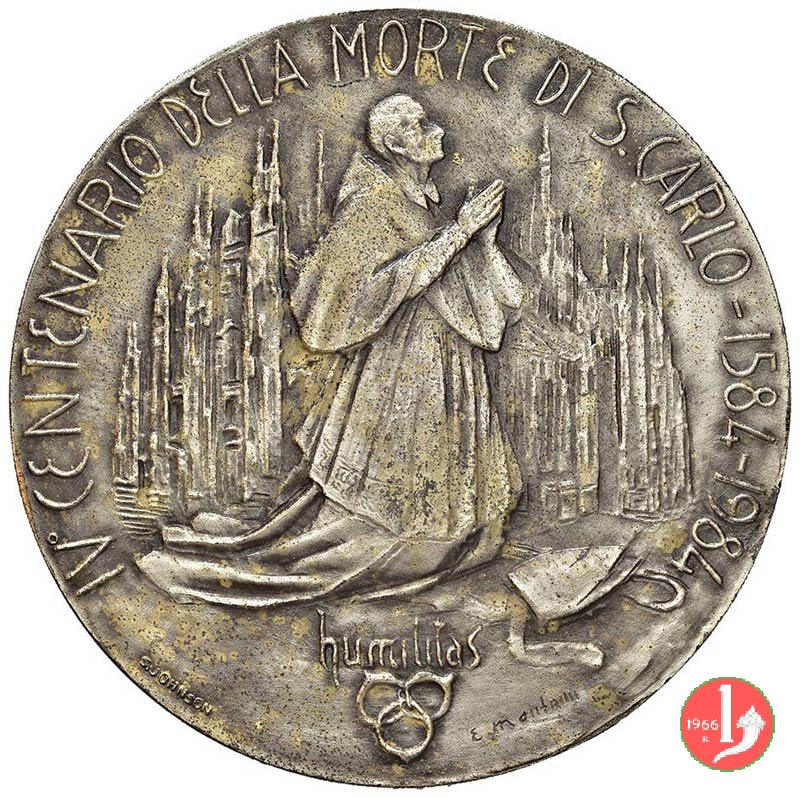 IV Centenario della morte 1984 Obverse: S. CARLO BORROMEO + 1584 + 1984 Il Santo orante verso dx in basso a dx: E. MANFRINI | |