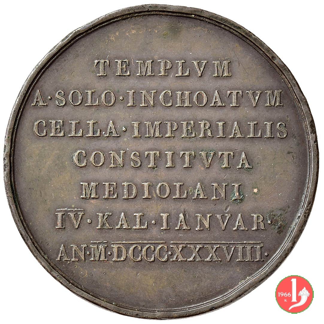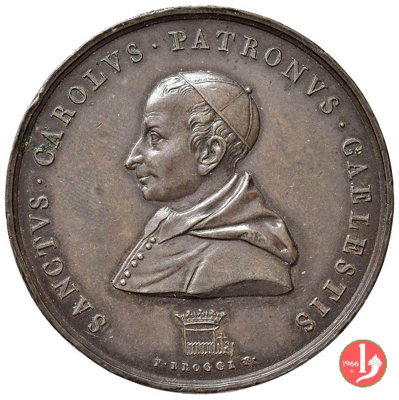 Chiesa di San Carlo al Corso inizio 04-01-1838 Obverse: SANCTVS • CAROLVS • PATRONVS • CAELESTIS busto a sx con berretto e mozzetta sotto: HUMILITAS coronato = F. BROGGI F. | |