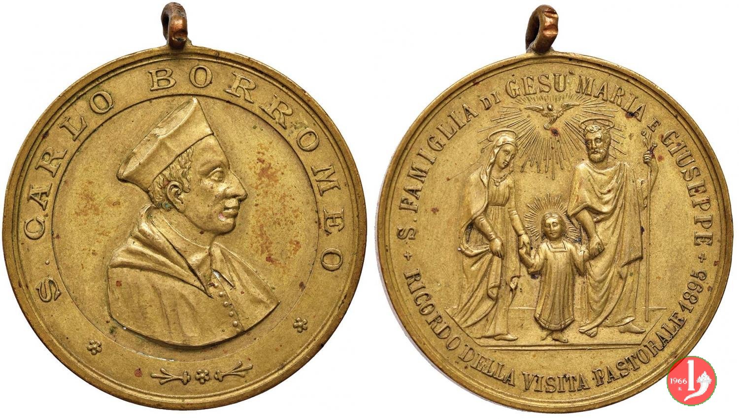 Sacra Famiglia - Visita Pastorale 1896 Obverse: * S. CARLO BORROMEO * busto a dx con cappello e mozzetta in basso, a sx: S.J. La Sacra Famiglia di fronte irraggiata dalla colomba dello Spirito Santo | |