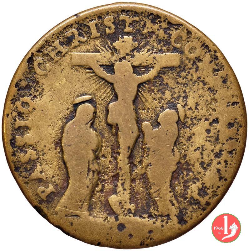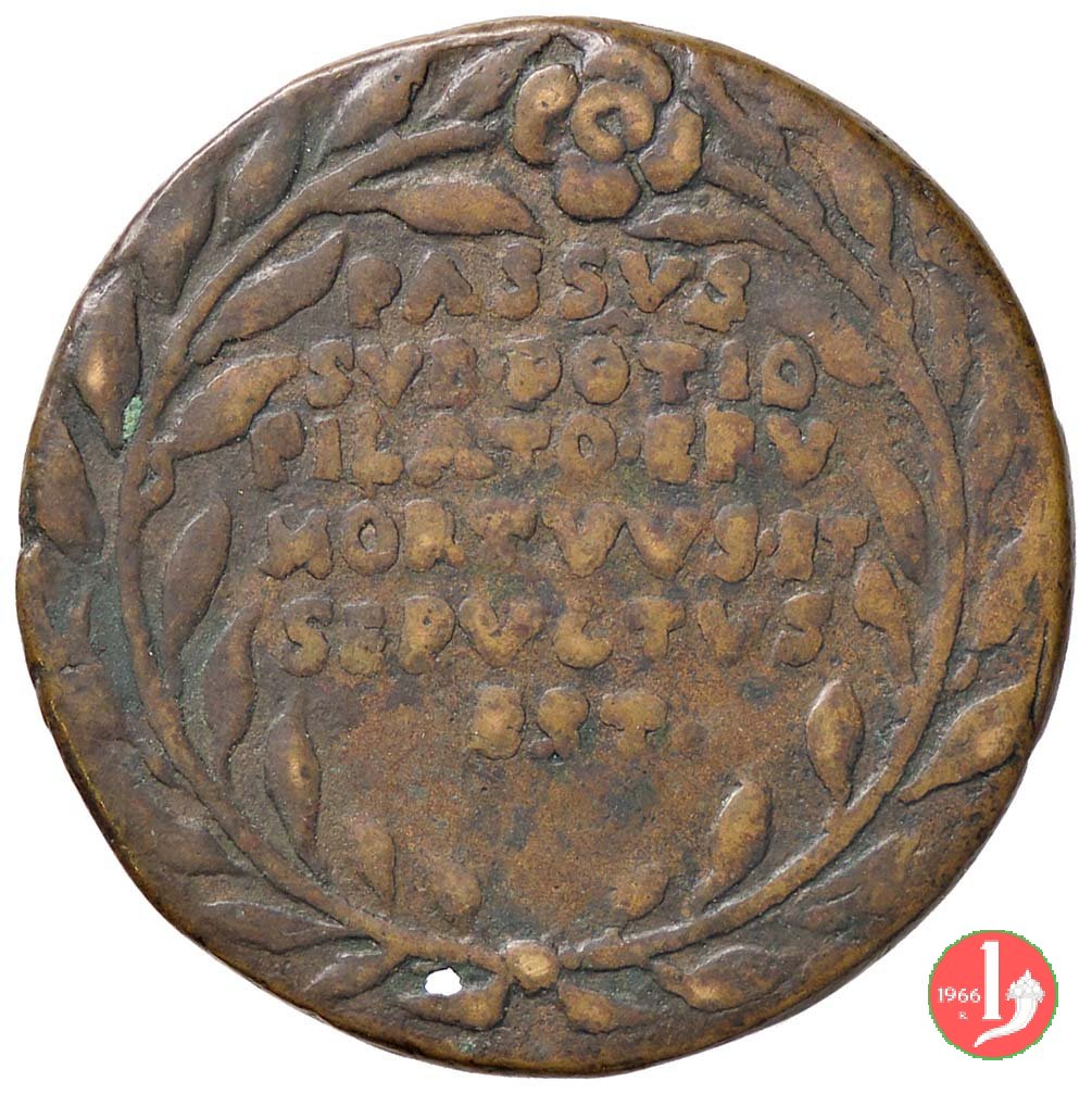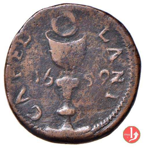 Dionisio 1659 Dritto: S _ DIONI _ SIVS testa di fronte con mitra Ostia su calice ai lati: 16 _ 59 | |