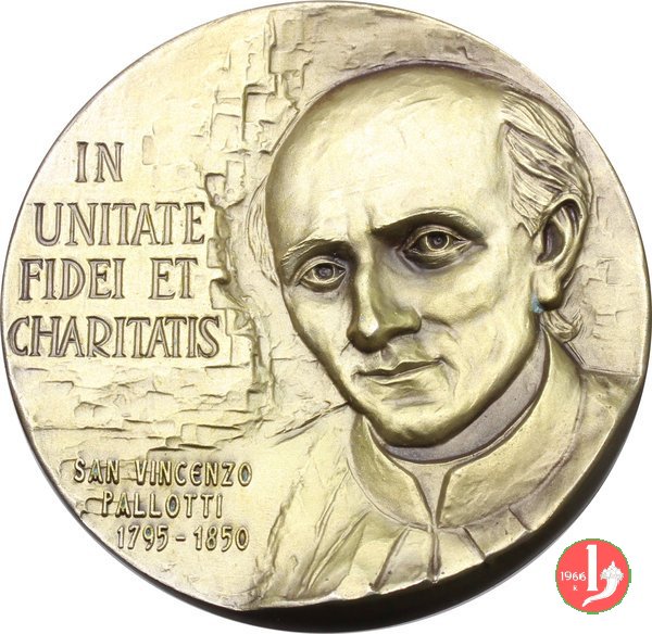 Vincenzo Pallotti - Chiesa di San Salvatore in Onda Dritto: busto di fronte leggermente volto a sx di Vincenzo Paolotti con abito talare nel campo a sx: IN = UNITATE = FIDEI ET = CHARITATIS in basso a sx: SAN VINCENZO PALLOTTI = 1795-1850 in basso entro nastro: APOSTO _ LATO CATT _ OLICO in basso a sx: CDF in basso a dx: ITALY | |