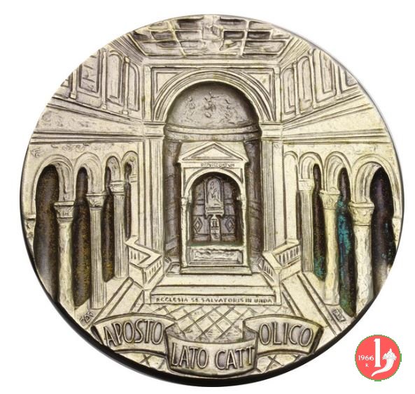 Nicola da Bari Dritto: _ • SANCTO • _ NICOLAVS _ • EPISCOPO • San Nicola nimbato e benedicente, in piedi tra quattro medaglioni con Cristo e Maria in alto e figure oranti in basso ai lati: ADESTO _ NOBIS = PIVS • AC _ PPITIVS sulla linea dell'esergo: ANN.IX.SAEC.A.CONCIL.BARSN in esergo: • BARIVM • entro campo rigato orizzontalmente: doppia Croce tra due vasi sui bracci: AVE SACRA CRVX | |