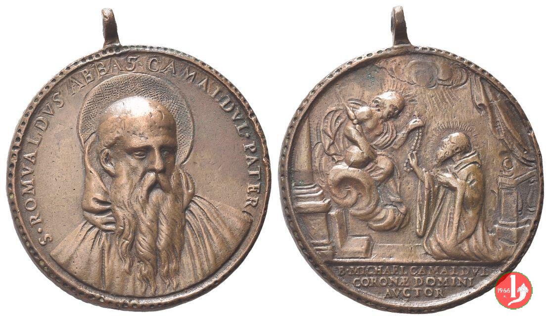 Romualdo - Michele Carcano Dritto: S • ROMVALDO ABBAS • CAMALDVL • PATER busto nimbato di 3/4 a dx con saio in esergo: E • MICHAEL • CAMALDVL = CORONAE • DOMINI = AVCTOR | |
