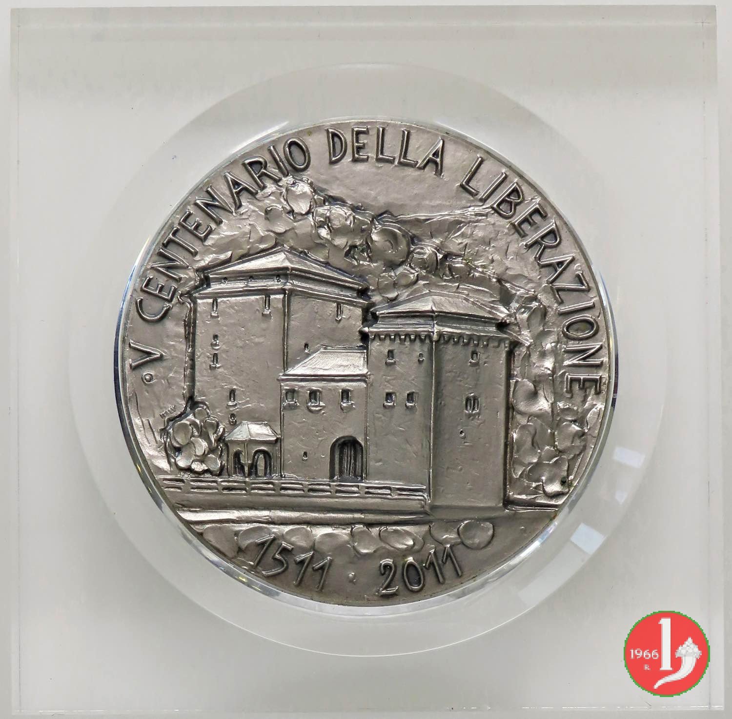 Girolamo Emiliani 2011 Dritto: SAN GIROLAMO EMILIANI Il Santo genuflesso al cospetto della B. V. Maria velata, viene liberato dalle catene in basso a sx: CDF a dx: CIMAROSTI Vista di Castelnuovo di Quero a sx: ITALY in esergo: 1511 • 2011 | |