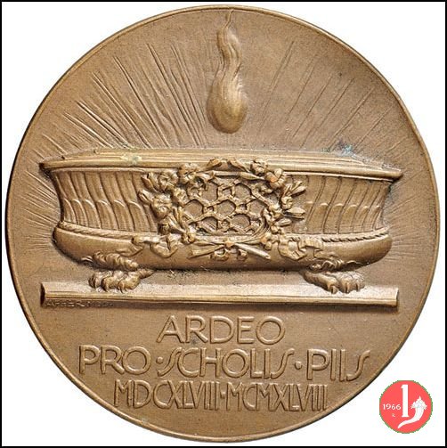 Giuseppe Calasanzio -300° Scuola Popolare 1897 Dritto: S. IOSEPHO CALASANTIO SCHOLARVM PIARVM AVCTORI A • M • D • XC • VII * busto nimbato di 3/4 a dx con cappa, regge libro a perto su cui: AD MAJUS = PIETATI = INCREMENTI _ CONSTITUTI = CO • RE • PAX = MATRIS DEI = SCHO PIAR sul taglio del busto: L. GIORGI F. in basso: OFF. L. GORI CONIO' IN FIRENZE | |