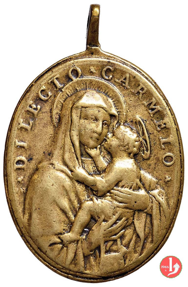 Teresa e Madonna del Carmelo Dritto: S • MATER _ TERESIA busto velato e nimbato di fronte, orante busto della B. V. maria velata e nimbata di 3/4 a dx regge il Bambino Gesú nimbato | |