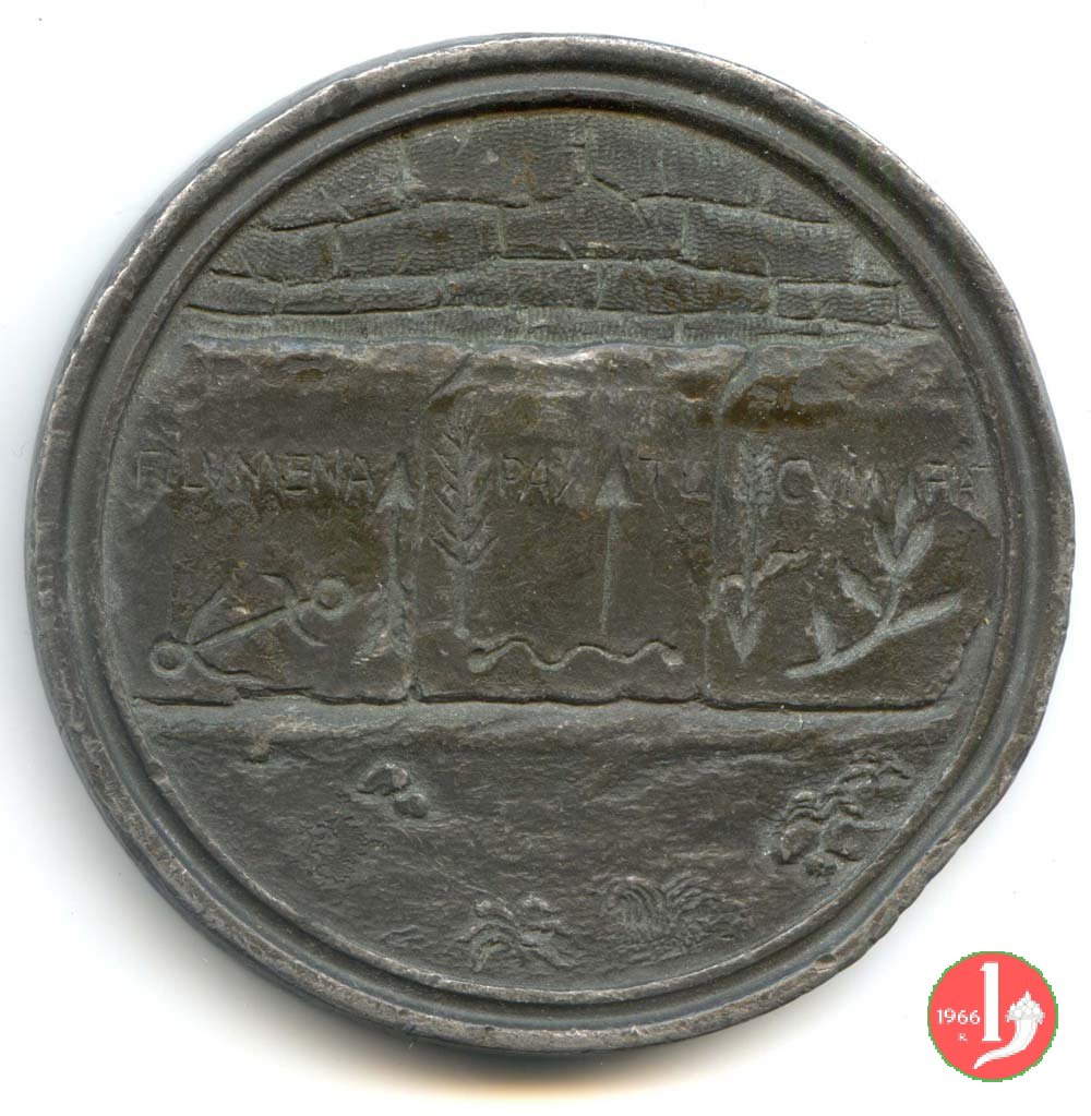 Nazario 1901 Dritto: S. NAZARIO _ PREGA PER NOI entro cornice quadrilobata e cuspidata: busto di 3/4 a dx con mitra e piviale entro cerchio perlinato e cornice quadrilobata e cuspidata: RICORDO = DEL = XIII = CENTENARIO | |