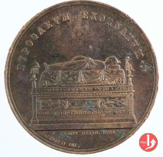 Cristina 1894 Dritto: HYPOGRAEVM • EXORNATVM Tomba della Santa sotto: P. ZAMPI DELIN 1894 in basso a sx: FACCIOTTI INC. Altare con ciborio alla base: MCCLXIII in esergo: J. COZZA F.F. | |