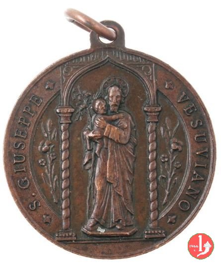 Giuseppe Vesuviano Dritto: ✠ S. GIUSEPP ✠ _ ✠ VESUVIANO ✠ entro arco ogivale affiancato da steli di giglio: San Giuseppe in piedi regge Bambino Gesú | |