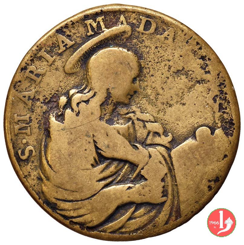 Maria Maddalena Dritto: S • MARIA MADA (...) busto nimbato a dx con mantello Croce raggiante tra Sante oranti in piedi | |