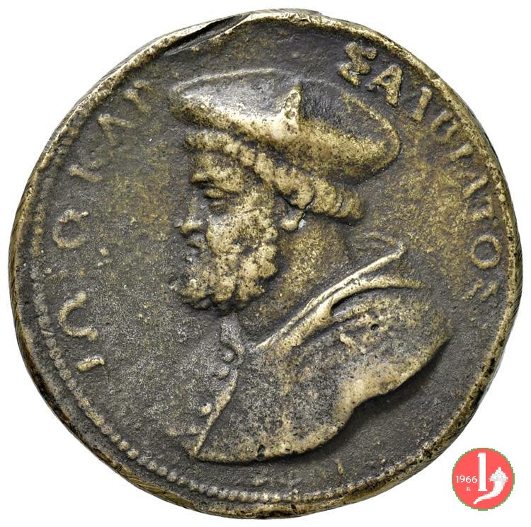 Giovanni Salviati 1540 Dritto: I ![]() OKAP _ ![]() A![]() UIATO![]() ![]() busto a sx con cappello e mozzetta sotto: 1540 figura allegorica dell'Arno disteso verso sx, versa acqua da orcio sotto: APNOS | |