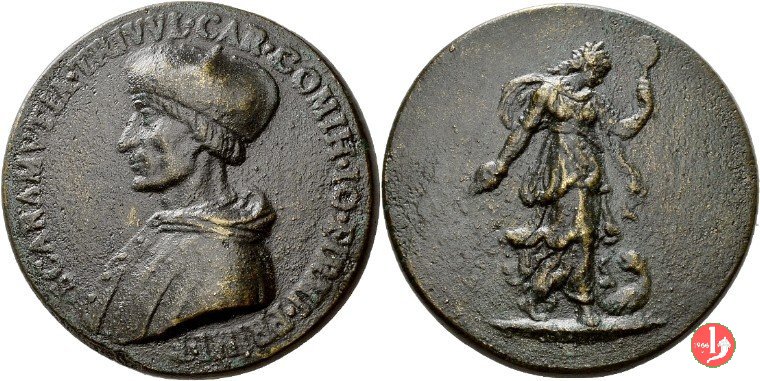 Giovanni de' Medici Dritto: busto a dx con mozzetta Verso: NON SIMPLEX VIRTVTIS OPVS Figura femminile corazzata, allegorica delle virtú, regge lancia, scudo e ramo d'ulivo | |
