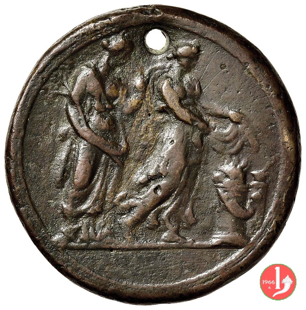 Giovanni Morone 1509-1580 Dritto: IOANNES CARDINALIS _ MORONVS busto a sx con cappello e mozzetta le figure allegoriche di Marte elmato e Venere con ramo di palma, reggono nastro svolazzante, in piedi di fronte | |