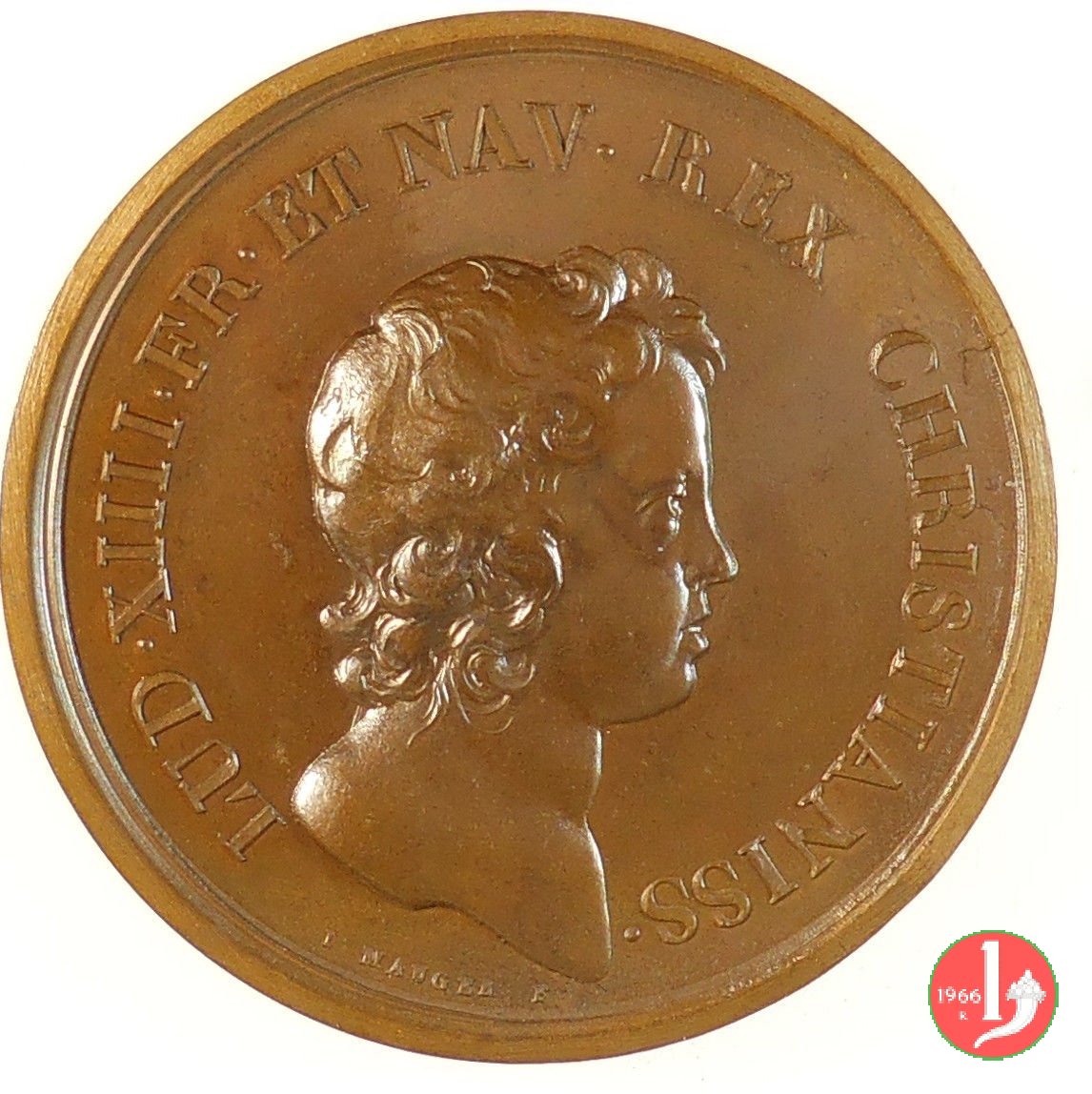 Presa di Valenza - Luigi XIV 1656 Obverse: LUDOVICUS XIIII • REX CHRISTIANISS • busto a dx con capelli riccioluti sotto: J • MAVGER • F • la figura allegorica della Francia, con stendardo gigliato atterra l'Italia turrita in esergo: M • DC • LVI • | |
