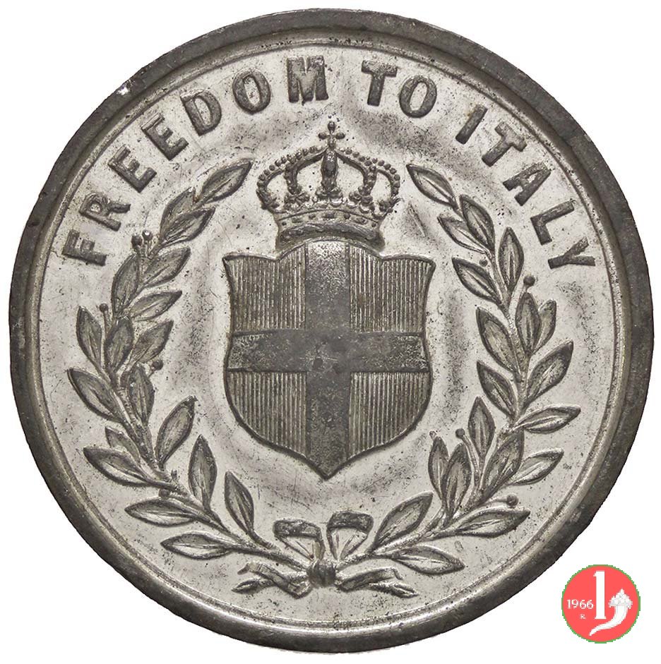 nel campo: berretto frigio raggiante = TO COMMEMORATE = THE VISIT TO GREAT BRITAIN = OF THE BRAVE AND GOOD = GARIBALDI = WHOSE EXALTED VIRTUES = NOBLE PATRIOTISM = AND = UN ELFISH HEROISM = HAVE WON FOR HIM = THE LOWE = AND ADMIRATION = OF ALL