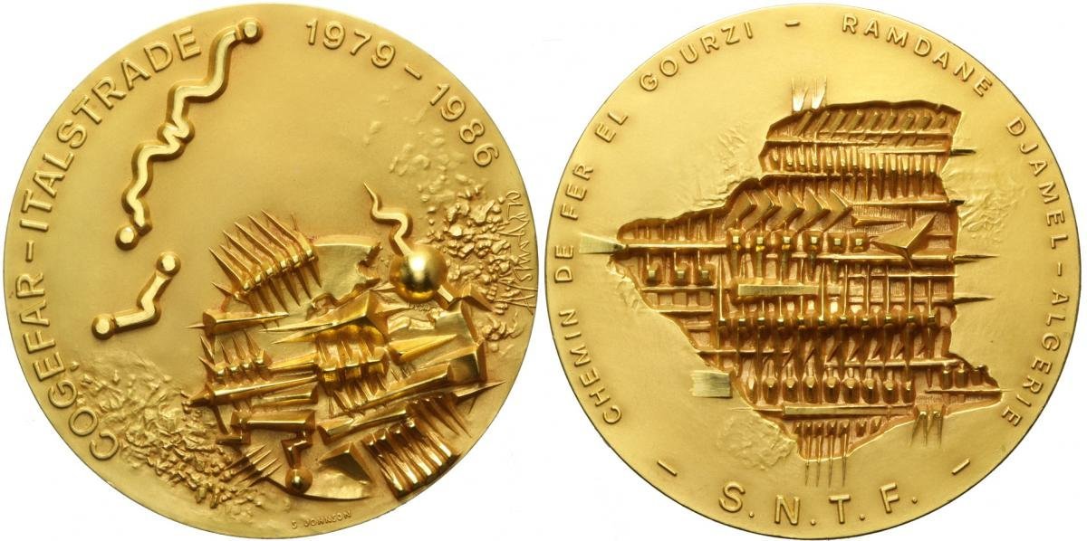 Algeria - Ferrovia El Gourzi 1986 Dritto: COGEFAR - ITALSTRADE _ 1979 - 1986 Composizione con medaglia di Pomodoro in basso: S. JOHNSON in basso, a dx: A. POMODORO composizione di Pomodoro | |